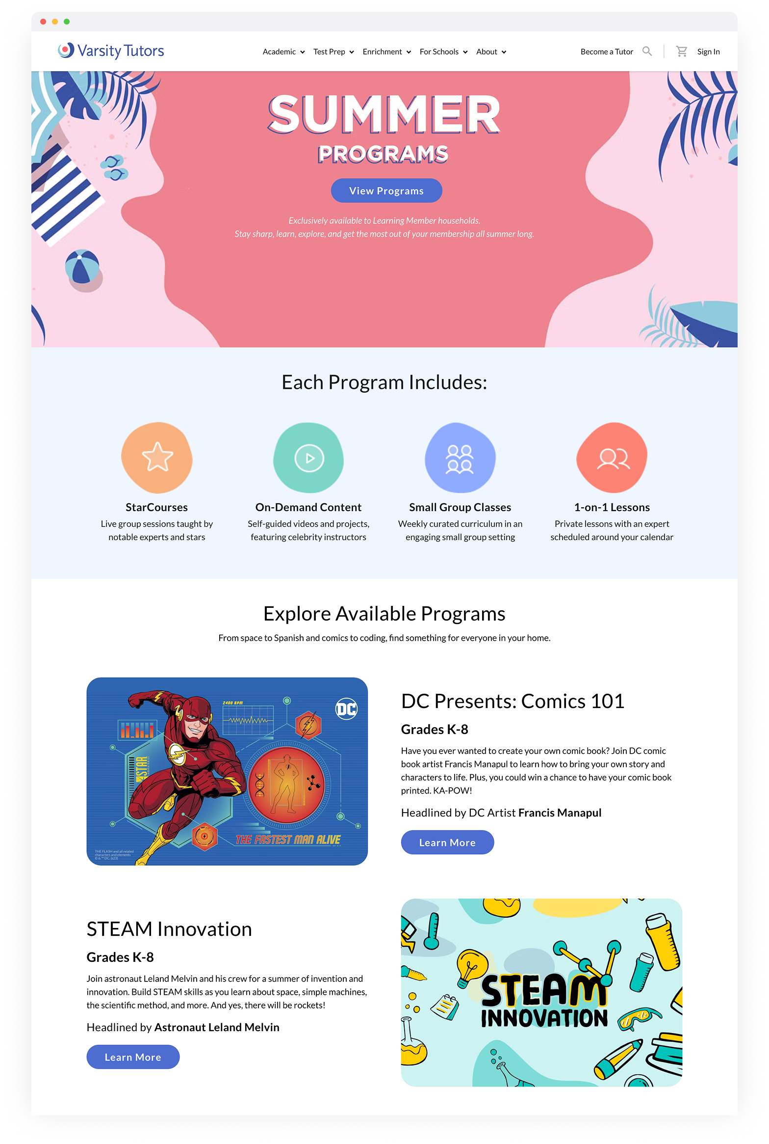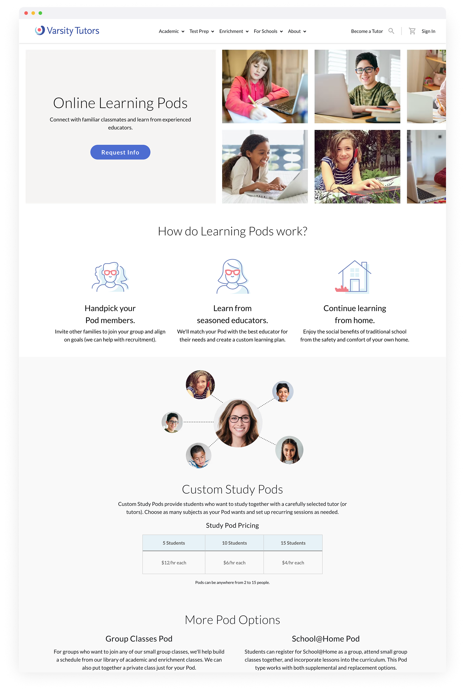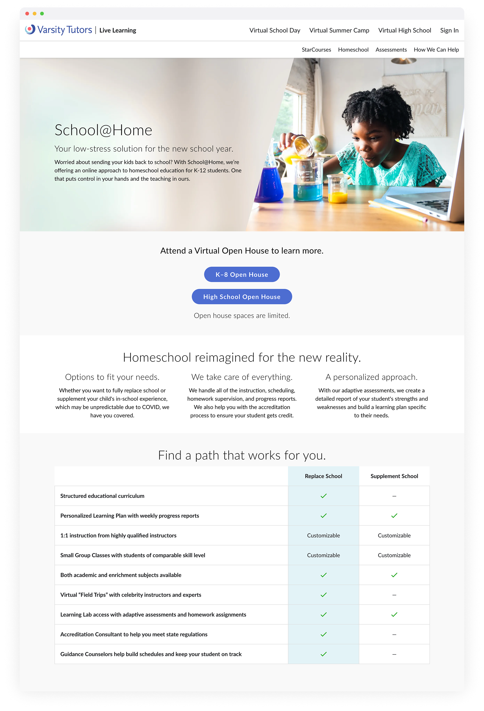 Web copy went from hard-sell to benefit-driven. During the pandemic, our model and our messaging changed to focus on helping parents navigate learning from home.